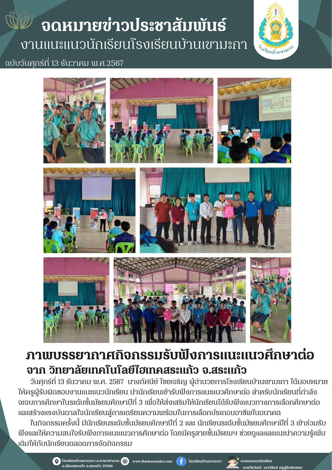 วันศุกร์ที 13 ธันวาคม 2567 ครูงานแนะแนวศึกษา นำนักเรียนในระดับชั้นม.3 รับฟังการแนะแนวศึกษาต่อ