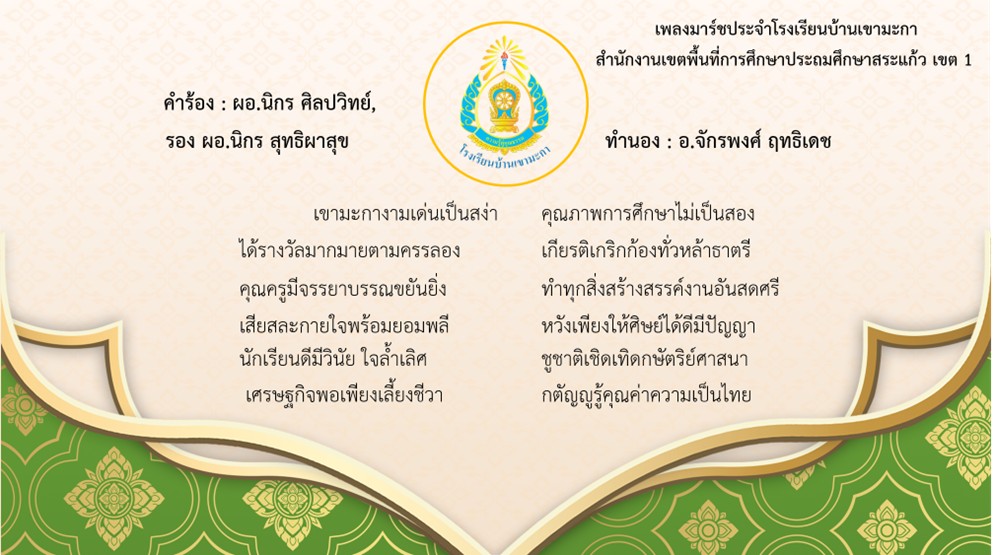 เพลงมาร์ชประจําโรงเรียนบ้านเขามะกา สํานักงานเขตพื้นที่การศึกษาประถมศึกษาสระแก้ว เขต 1
