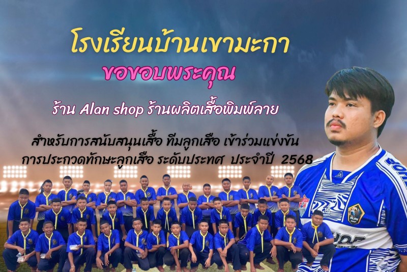 ขอขอบพระคุณ ร้าน Alan shop ผลิตเสื้อพิมพ์ลาย สำหรับการสนับสนุนเสื้อจำนวน42ตัว ให้นักเข้าร่วมการแข่งขันประกวดทักษะลูกเสือ ระดับประเทศ