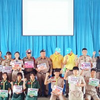 คณะเจ้าหน้าที่ตำรวจ สถานีตำรวจภูธร เมืองสระแก้ว โดยพันตำรวจตรี รชต นาสินเพิ่ม สารวัตรจราจร สถานีตำรวจภูธร อำเภอเมืองสระแก้ว และคณะ ที่เข้ามาให้ความรู้โครงการ ผนึกกำลังร่วมใจต้านภัยไซเบอร์